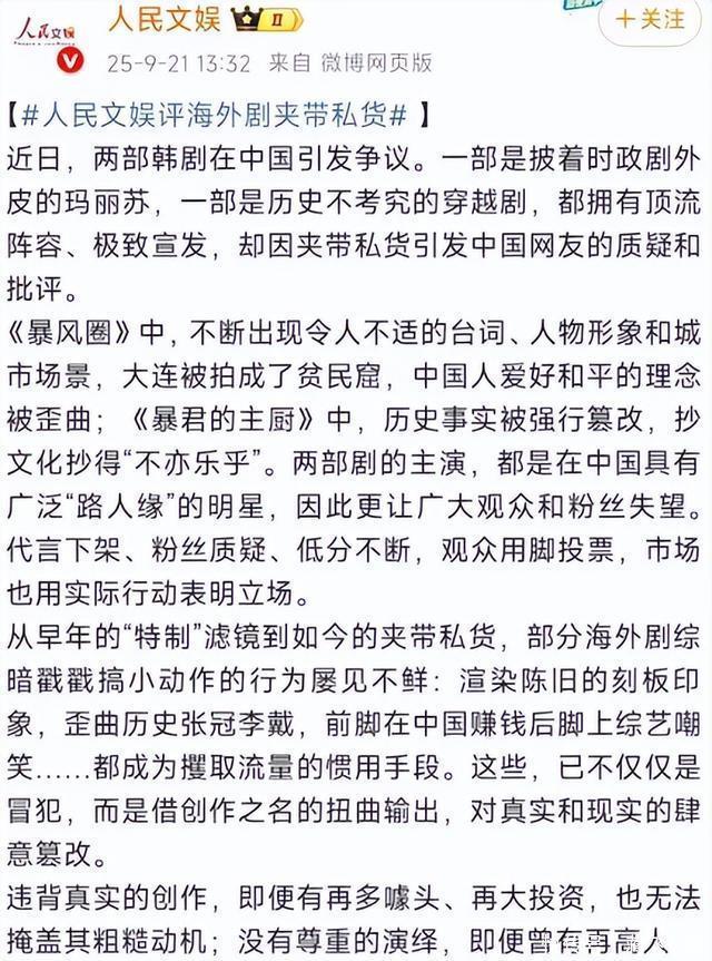 可令人感到矛盾的是,全智贤这般的傲气,一副事不关己高高挂起的姿态,图了个什么? 难道真的不怕失去,亦或者,藏了别的目的。 值得一提的是,除了全智贤、林允儿在播的韩剧《暴君的主厨》,也存在辱华的情节。 这部剧中,来自明朝的使臣变成丑角,不仅给朝鲜君王下跪,还被随意殴打,这完全不符合真实的历史。